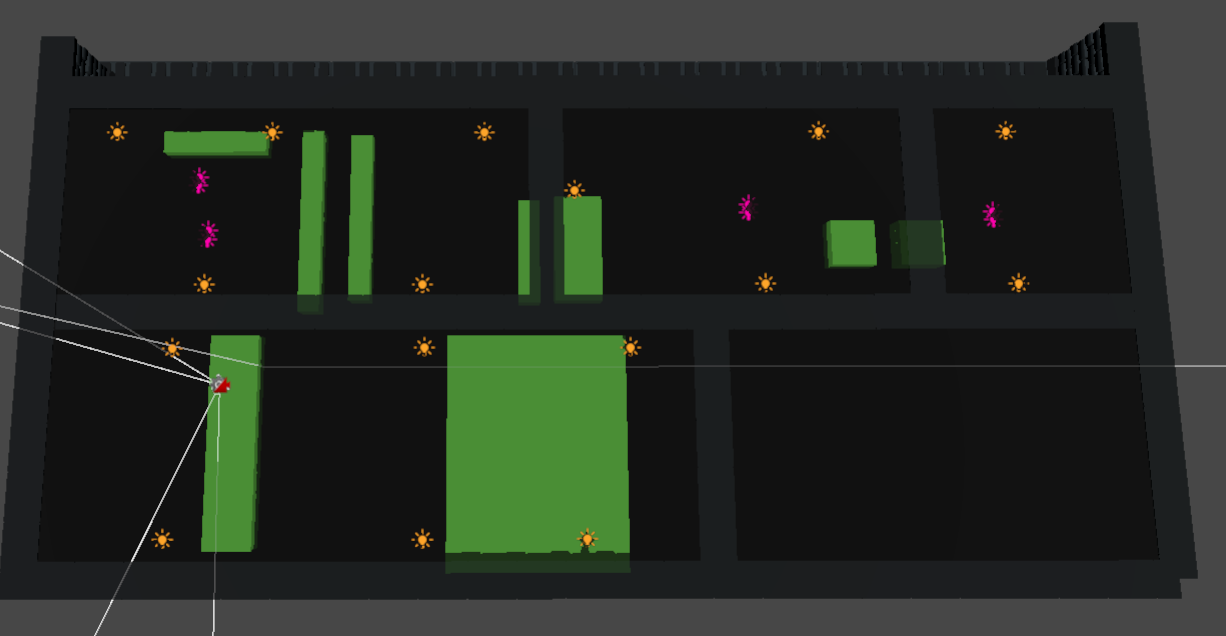 Dungeon Explorer is a Unity adventure/puzzle prototype developed in roughly one week following a controller design course. In this top‑down game the player explores dungeons while the camera is indirectly controlled through map triggers, allowing for perspective‑based puzzles such as hidden doors revealed from certain angles. I implemented basic enemy AI with room‑based aggro and pursuit, created bosses with stronger stats, and designed a camera system that tracks the player and transitions between trigger zones to craft puzzles and maintain a 3/4 top‑down perspective. The project served as a quick exercise in rapid prototyping and AI design.