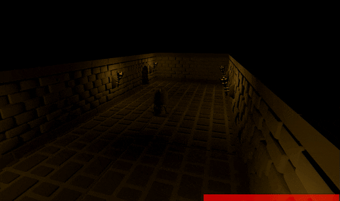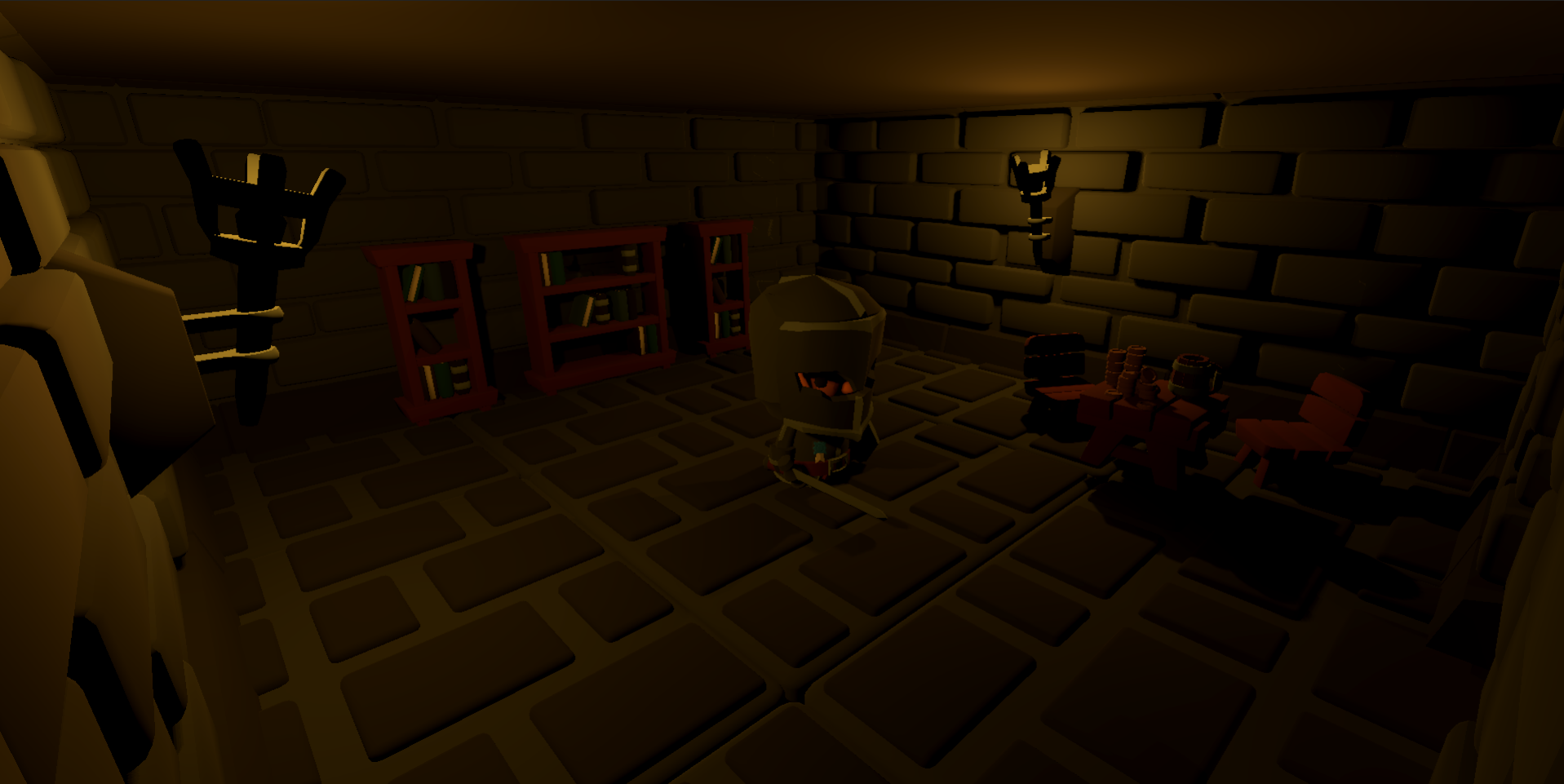 Finally, the 3/4 top-down camera provides a room overview while concealing the rest of the dungeon using black planes.